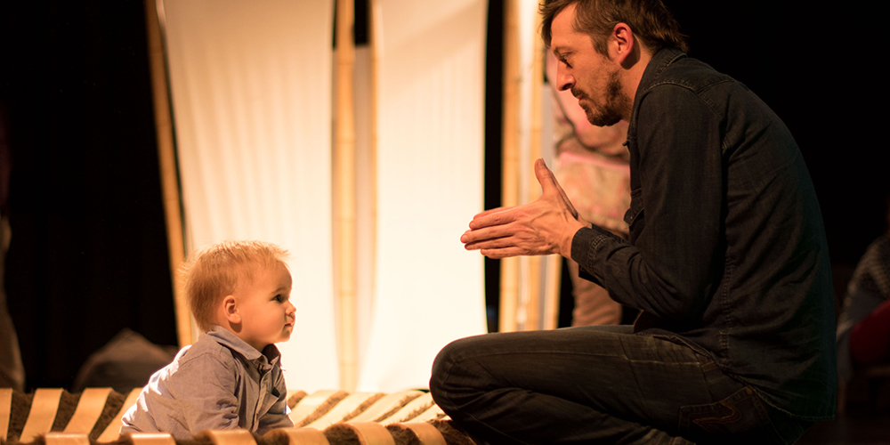 Through games, constructions and discoveries, eyes widen, hands rummage, mouths open, as children step forward and let themselves move at their own pace led by what they see, hear and feel. The musicians will follow the rhythm of the children’s games. Sometimes they remain inactive, sometimes they sound out musical notes and at certain moments they share the children’s discoveries.
